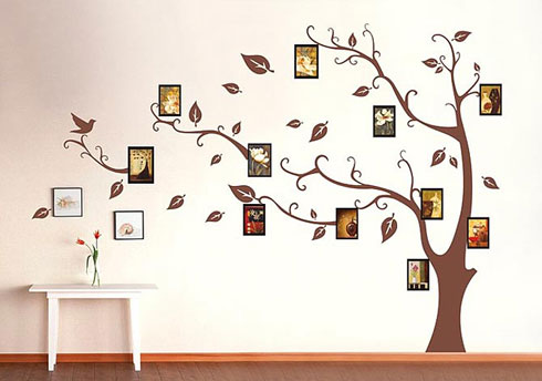 Я тоже над этим вопросом голову ломаю, есть две стены пустующие. Можно еще наклейки специальные приклеить или поставить посередине узкий столик, а от него дерево с семейными фотографиями. что-то типа того, только попроще )