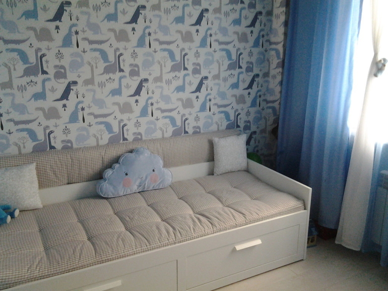 Интерьерное решение детской комнатыДевушки, у кого в пользовании такая кровать? очень интересует удобно ли в плане подушки. мне почему то кажется, что будет падать постоянно ( нет упора) или если не два матраса, а один использовать то пониже будет? ( опять надо думать куда 2 матрас тогда деть, где хранить) помогите живыми отзывами )
