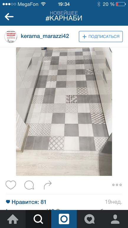 Он должен стыковаться с плиткой в коридоре во входной зоне, а потом переходить в белый ламинат. Плитка нужна при входе для того, чтобы этот белый ламинат не испортить. И нужна именно мелкоформатная, чтобы сделать уклон и плавный переход в ламинат, потому что на кухне получился довольно толстый сендвич из тёплого пола и керамогранита. Из такого размера я остановилась на Карнаби-стрит. Моя мечта о Малибу осталось мечтой