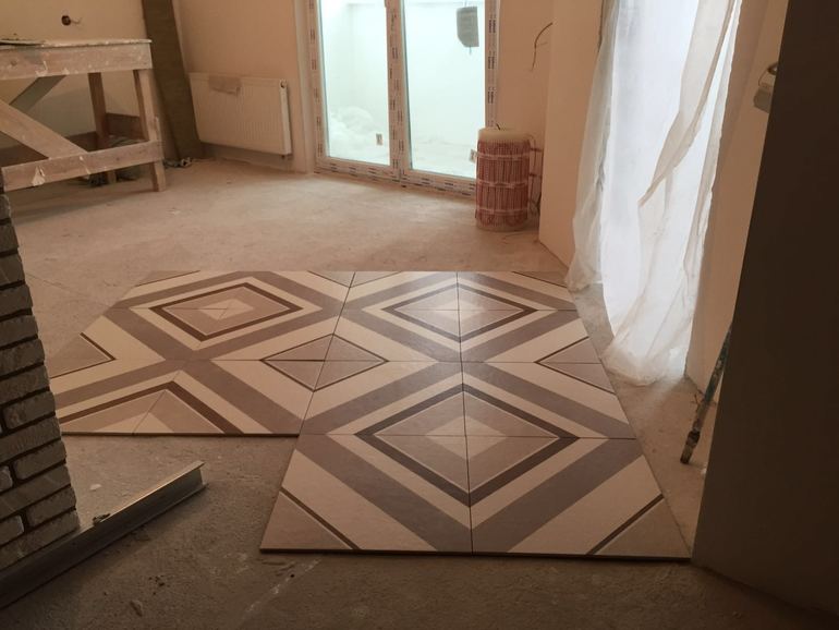 (Мне он нравится больше,т.к. При входе сразу целые плитки образуют рисунок)