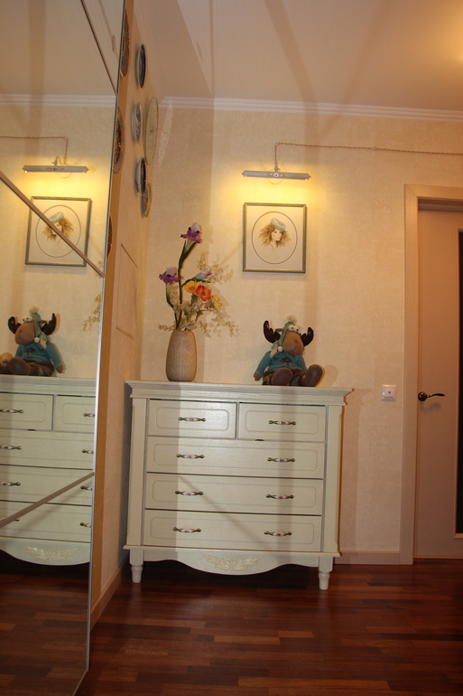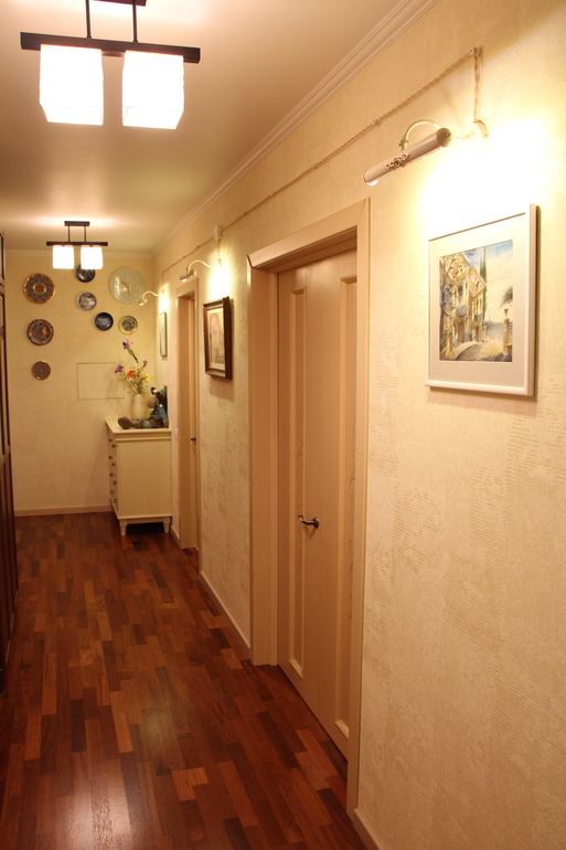 Двери и стены специально старалась сделать светлыми, но теплого оттенка, на прошлой квартире двери сделала темными, обои зеленоватыми и коридор был темноват из-за обилия дверей, здесь я свою ошибку поправила и получилось уютно.
