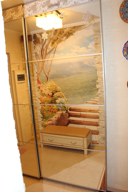 А, это зона прихожей. Очень довольна, что нет открытых полок и висящих на виду курток и т.п., все умещается в паксе.