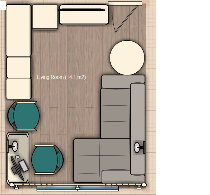Между первым и вторым вариантом критично размещение батареи - чтобы не сидеть на ней попой. Плюс меня смущает столик - будет ли нормально проходить мимо него.