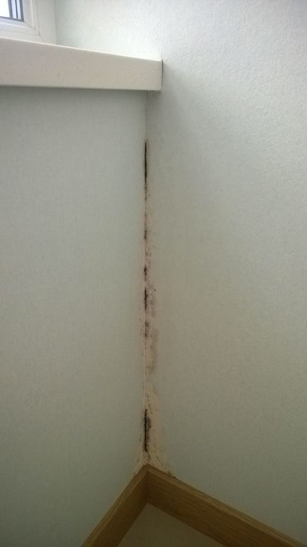 В холода на подоконниках скапливался конденсат, скорее всего он стекал и по этому углу. На втором балконе ситуация гораздо лучше, но именно со стороны балконов соседей появилось вот это :(((