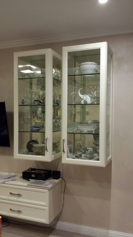 Это витрина, в ней посуда. Фото полностью нет. Если очень надо, то постараюсь вечером сфотографировать. А для книг у нас икеевские шкафы Билли, мне нравится, их можно сделать высотой 2 метра, а можно добавить верхние шкафы еще 40 см.