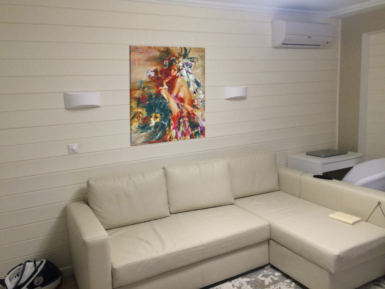 Это фотошоп, так ничего и не повесили пока. Я на каком сайте по печати заказывала, отправила фотокомнаты и фото картины и мне выслали результат как будет смотреться. Цена зависит от размера картины, около 15 тыс. ( и выше)