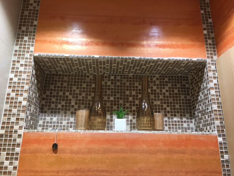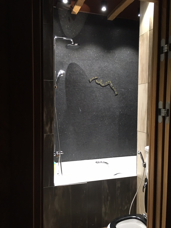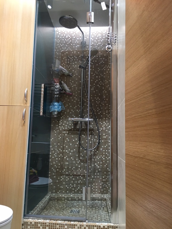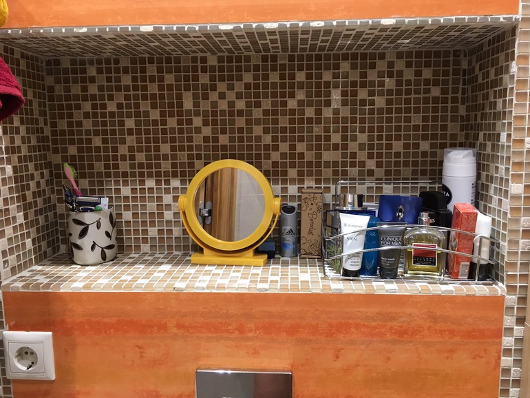 Вот душевая, вообще муж забрал её себе, на полках и в шкафчиках только его вещи, ну хоть мыться разрешил)))