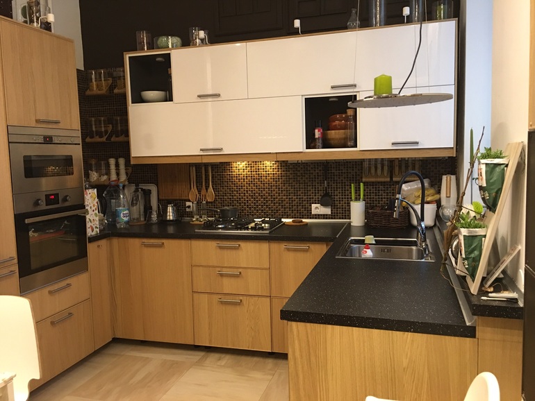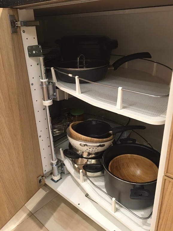 В общем, хорошие фотки есть на сайте, а я покажу немного обжитого и полочки, захламленность мне не нравится, но и по 10 раз доставать и убирать предметы- это высший маразм)