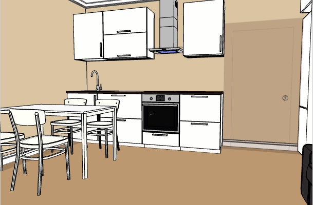 Татьяна, вот моя кухня с икеи , площадь комнаты такая же. Не добавила только телевизор и прочую мелочь. Может попробуете вариант с барной стойкой ?