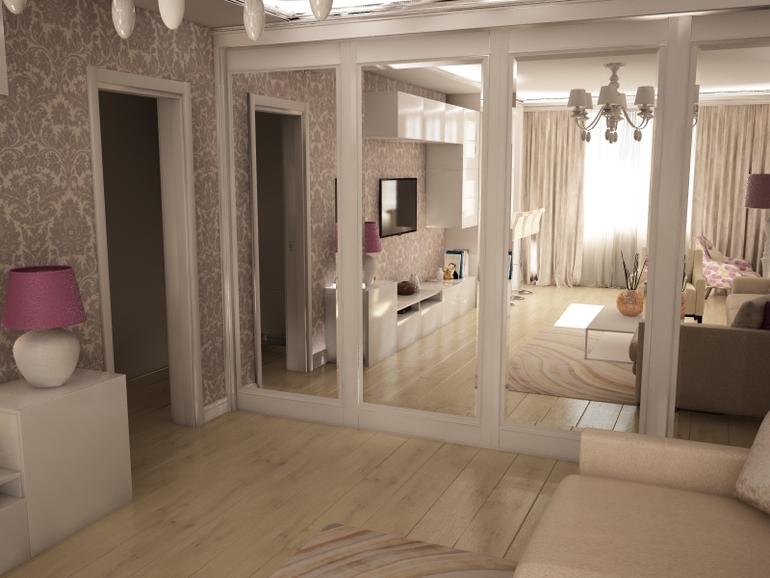 в этом варианте со шкафами купе скрывается и дверь в детскую, лена мне сказала, что такое можно воплотить в жизнь, но цена вопроса конечно же будет не маленькая)))