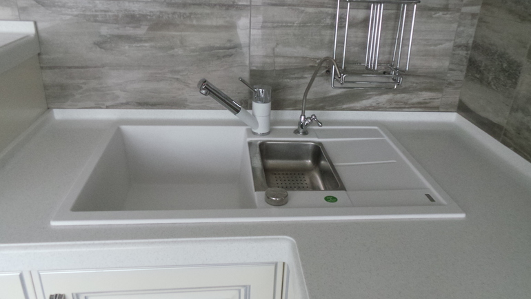 Заказали кухню и тоже мойка в углу. Правда у меня она встанет на шкафчик 60 см плюс угол пустой (имеется ввиду внутри, т.е. мойку хоть метровую). Вот думаю, может взять мойку подлиннее и продлить ее, как у вас, вправо, но удобно ли будет, что часть мойки будет в совсем в глухой части...