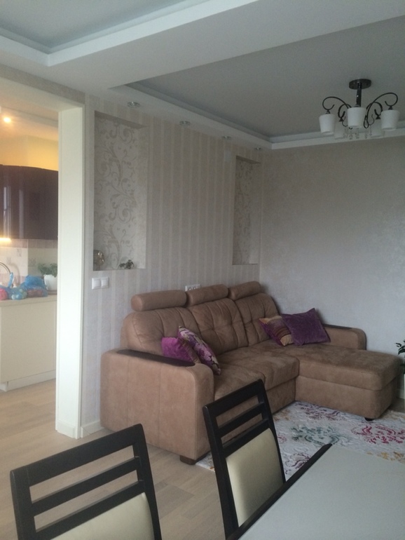спасибо, ниже есть фото без картины, лучше? С вензелями совсем плохо? А если их убрать (муж прибьет наверно с этим ремонтом), за диваном поклеить однотонные как сбоку от дивана, а вместо вензелей кирпичи? Ну или не кирпичи, но однотон во всей комнате наверно не очень, что-то хочется добавить. Но шторы точно менять не буду.