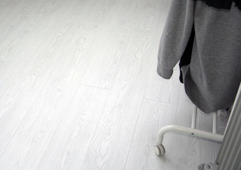 Посмотрите у меня в дневнике. Практически белый ламинат с ярко выраженной структурой дерева. Изначально я хотела вообще чисто-белый)