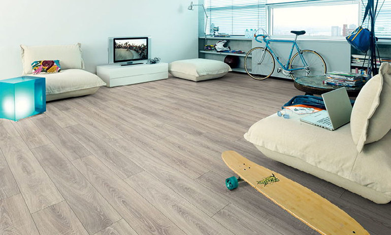 у нас "беленый дуб" ламинат Грюнд. В прошлой квартире был он 5 лет и в новой сейчас тоже. Все прекрасно. Купите моющий пылесос))))