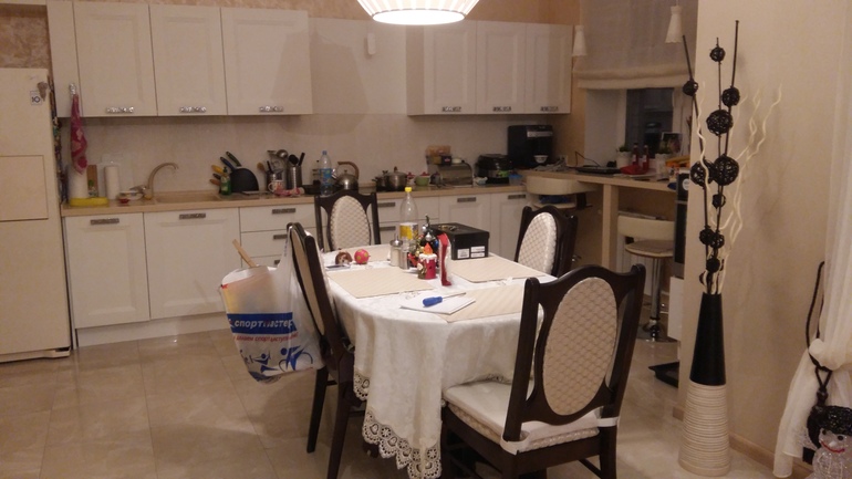 она там стояла))потом елку ставили и вазу убрали. мужу она около стола больно нравится