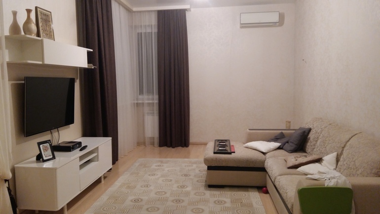 Интерьерное решение гостинойИмеем гостинную совмещенную с кухней.