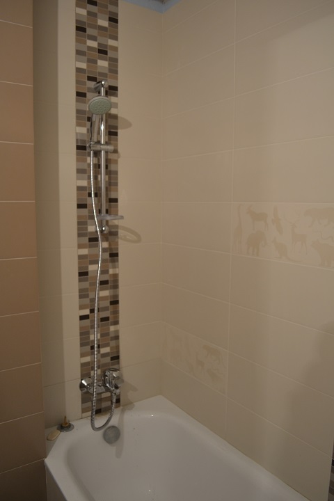 У нас плитка идет от ванны, поэтому здесь только герметиком. А вот у потолка пришлось потолочный плинтус использовать. Как-то сразу на этом не акцентировали внимание и мастер сделал вверху так, что без плинтуса уже было никак не обойтись. Сначала, слегка расстроилась. А потом ничего,получилось нормально . Сейчас на это уж даже и внимания не обращаю, были другие ляпы по-серъезней.