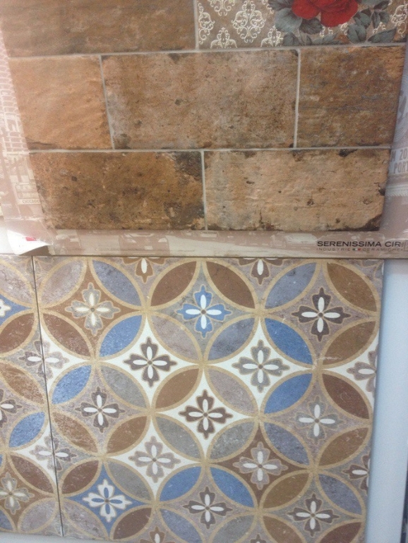 Вторая плитка узор мелкий, всем нра, но смущает что от коридора будет отличаться и боюсь что сотрется рисунок со временем. Подскажите, что бы вы выбрали? и может у кого готовый интерьер с ней?