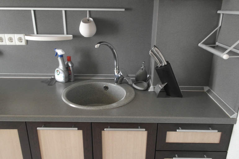 Да, знаю, не особо сочетается с цветом венге, поэтому и надо как-то обыграть фартуком или столешницей.