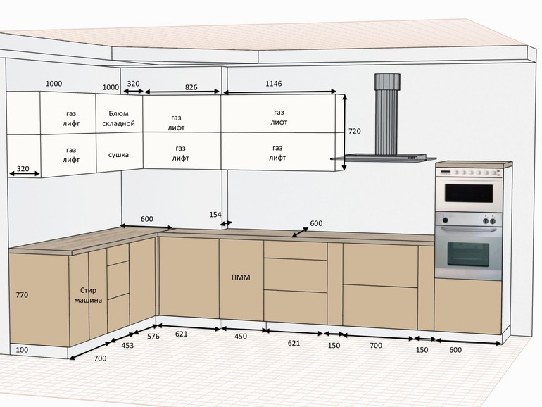 вот проект кухни - она не маленькая, и боюсь если сделать однотонную всю - не будет ли простовато?