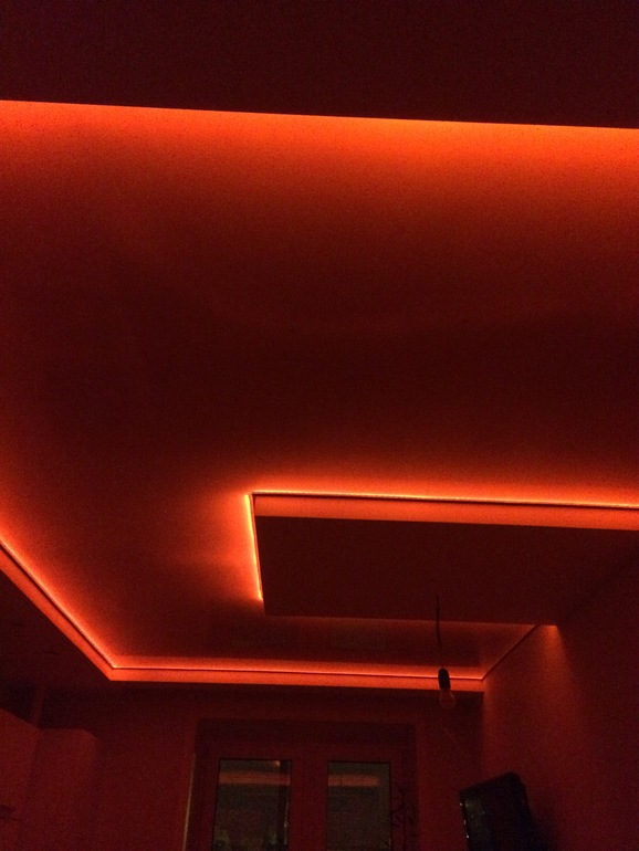 У нас индивидуальное отопление.Соседи сверху ещё ничего не прокладывали...в котле давление в норме,если была бы протечка,то котёл сразу же показал бы ошибку..Освещение,это подсветка в потолке,если бы не она,то мы вообще бы никогда не заметили данную проблему,т.к.потолок тёмный,при дневном и обычном свете ничего не видно.Такая же ситуация в гостиной,там тоже подсветка но потолки светлые...там нет разводов,только при надавливании видно как потолок "плавает" и пару пятен темных появилось((