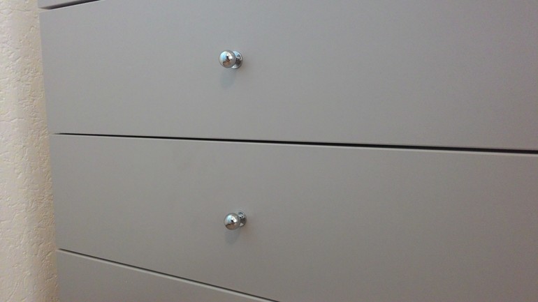 Я хотела фасады темнее. Цвет графита. Но увы, такого в наличии цвета не было, а ждать уже не могли и выбрали такой цвет. Кстати говоря, из-за скромного бюджета это самые дешевые фасады и ручки. Мы потратили на них 1900 рублей)