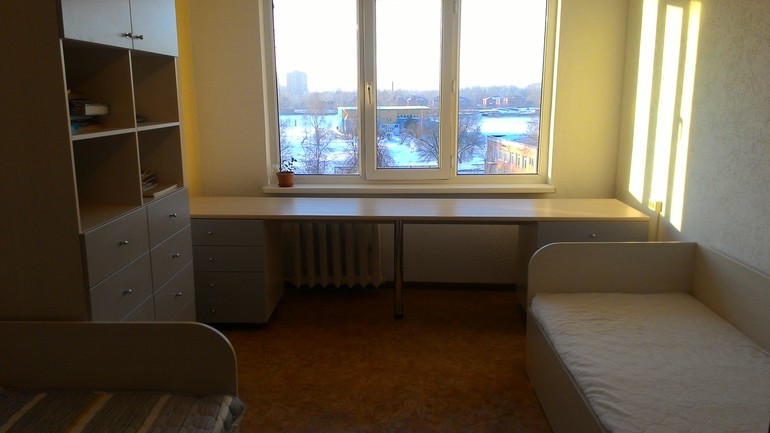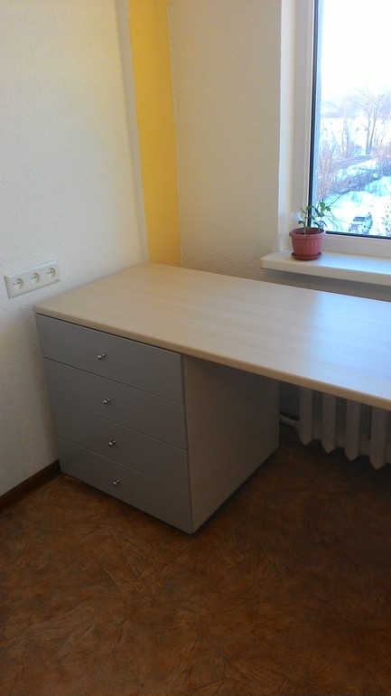 Я тоже так хочу сделать - стол вдоль окна. У вас сколько квадратов в комнате ? А места у окна - стенки - там полочки будут? Я хочу там стелажи или шкафчики что то такое.