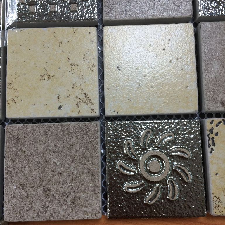 Я бы делала затирку среднего цвета.... Как бы объяснить.... Есть тёмные квадратики, есть посветлее и есть самые светлые.... Вот я бы делала в тон тем, что посветлее)
