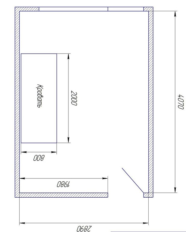 Если не угловой, то только двухстворчатый рядом с кроватью, а купе по всей левой стене не будем делать точно. А радиусный интересный, но делают ли такие двери на заказ? И мне кажется эти двери много глубины шкафа заберут.