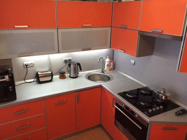 Цвет не сосем тот что я мечтаю конечно (хочу беж), фасады пластиковые. Но самое главное - у нас угол кухни другой получается((( думала пригласить мастера, чтоб посмотрел, можно ли ее вообще как-нибудь переставить другим углом.