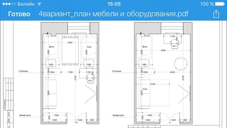 Решили сделать полностью детскую, без перегородок. Правда хотелось бы оставить все равно диван. Прислали новый чертеж. Что можно переделать?