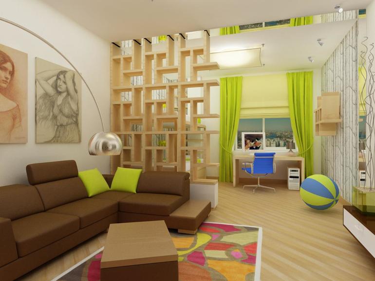 Сойдет лет до 13-14 старшего! Потом переделаете гостиную в еще одну детскую. Поставьте вместо перегородки сразу нормальные двери раздвижные!