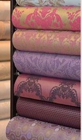 вот что могу предложить в этом цвете, могу список продолжить, а что касается выбранных вами обоев, то не совсем понятно, что за они в рулоне, выложите фото в развернутом виде
