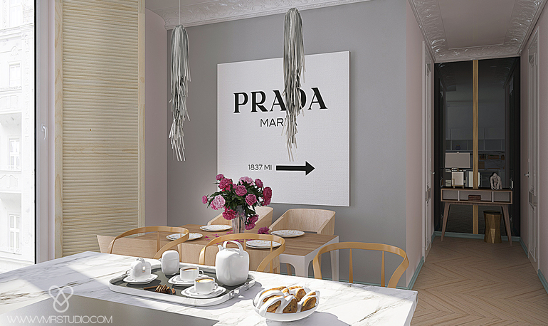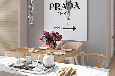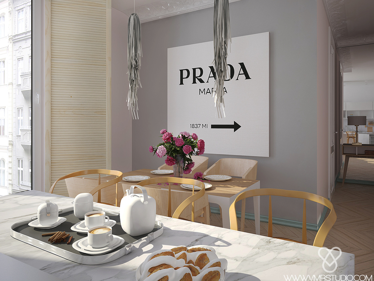 Постер PRADA MARFA нашел свое место именно на кухне, он разбавил стену и напоминает об отличном художнике и бренде , который нежно любит Заказчица! /кому интересно, советую ознакомиться с арт-объектом PM в интернете/
