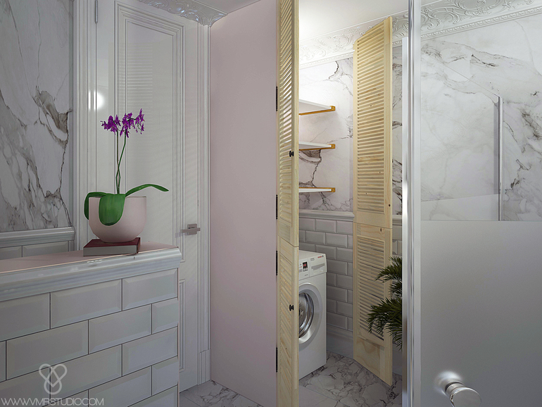Постирочную сделали непосредственно в санузле, дверцы все те же :)