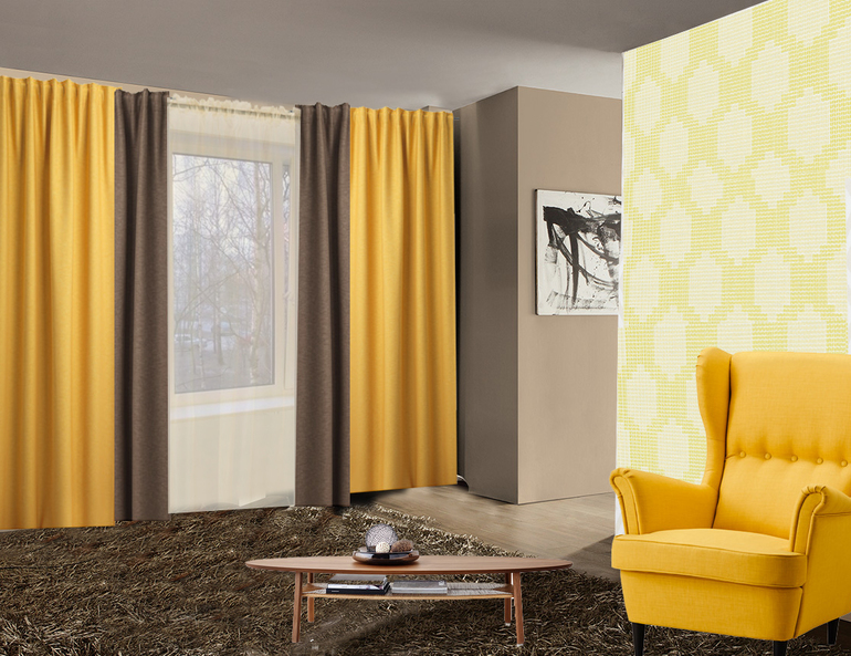 не обязательно добавлять желтый на стены, может быть перебор. У меня тоже желтое кресло и желтые шторы из Икеи, но обои серые однотон+серые зигзаги. Если бы еще обои желтые были, было бы многовато.