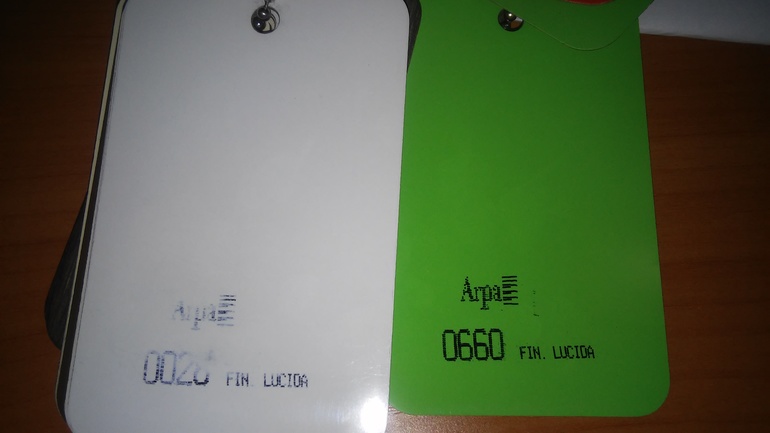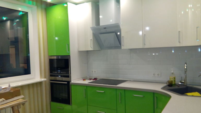 Или над шкафами и у стола зелеными, а где вход и окно белыми?