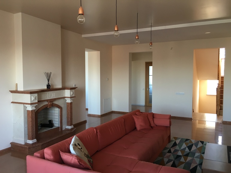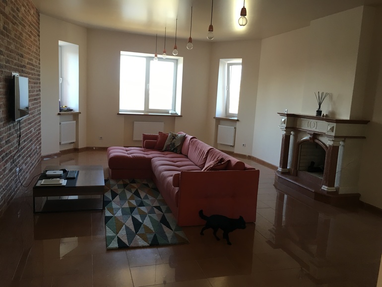 Ну и последнее. Про камин. Не люблю я его, но выкинуть жалко, оставила из уважения к отцу, который его проектировал. Пришлось подбирать все цвета под него, чтоб он не был пятном в интерьере. Хотя он конечно классический, и совсем, увы, не в нашем стиле.