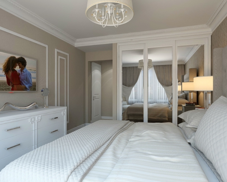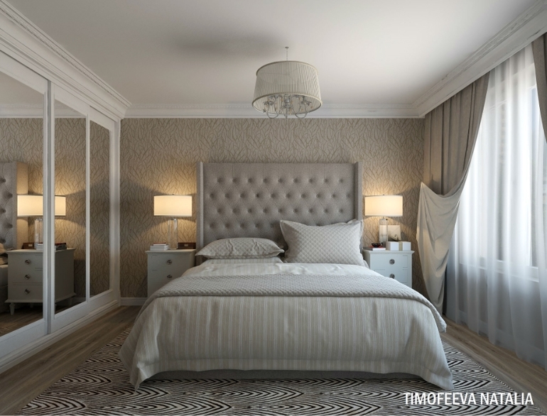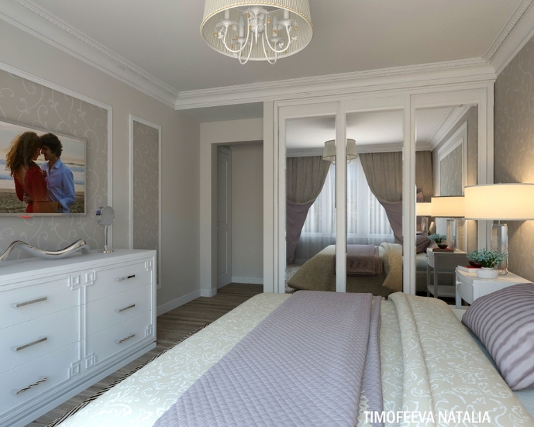 Здравствуйте ! В варианте спальни супругов с креслом (1 вариант) у кресла необходимо продумать свое освещение (торшер ).А то захочет один из супругов на ночь посидеть газетку или книжку почитать , а свет прийдется общий включать. (а вдруг второй из супругов уже лег отдыхать?) Далее по фурнитуре: ручки на комоде радикально отличаются от ручек на прикованных тумбах ,если это не одна коллекция ,лучше поменять их на одинаковые, чтоб интерьер смотрелся целостным . Проем в спальне между комнаты и входной дверью для чего смонтирован? Мне кажется он там совершенно не нужен. Ощущение , что сделали ремонт под одну планировку , а в итоге вышла другая.То ли недоделали ,то ли переделали.