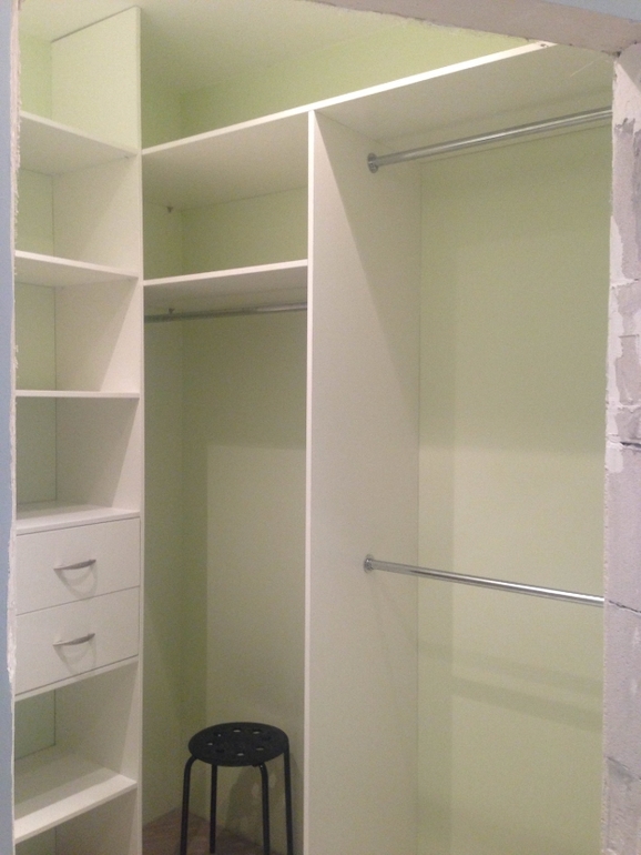 Классно получилось. Мне понравилось, что из белого дсп сделали. У меня тоже гардеробная не ровная, да еще и мандсардный скос в ней. Скоро буду голову ломать. А по цене и правда дорого получилось. Я недавно подруге считала похожую, даже кажется больше - получилось 26 тыс. С установкой и доставкой из эггера. (У меня у брата свой цех) я не рекламирую. Мы из Тулы.