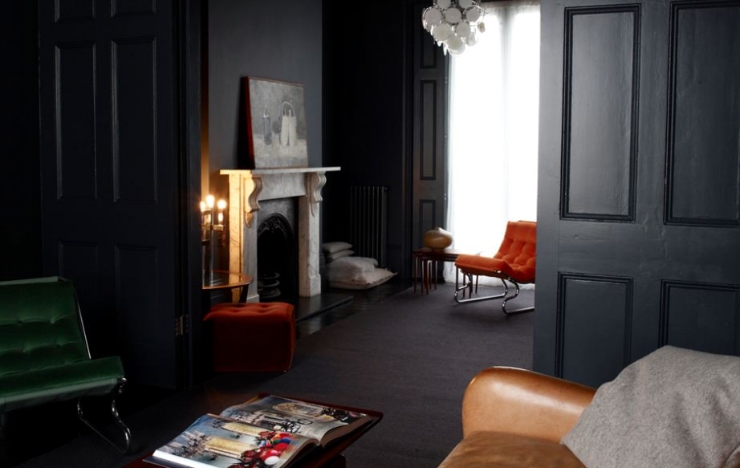 Вид из коридора. Слева мы видим скрытую дверь, которая ведет в спальню (фурнитура в итоге будет черной, не хром), а справа, собственно, гостиную в которой мы уже с Вами побывали :). Декоративные светильнички в коридоре выполнены из бетона и дерева (можно приобрести на нашем сайте), шнуры специально подобраны черные, что дополнительно объединяет часть коридора с общим интерьером. Консоль удобная вещь в прихожей, на нее можно скинуть ключи, документы или сдачу из магазина, а многие даже держат на ней целую копилку :D...