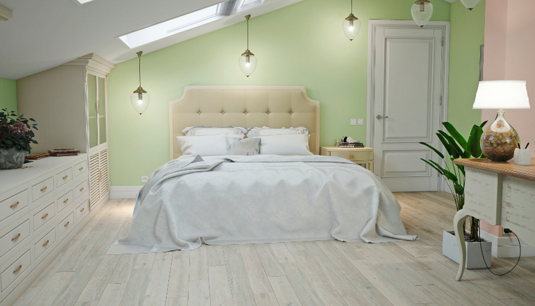Лично для себя, я бы не хотела спальню с таким потолком. Кабинет, игровая, студия, но на меня давит то что потолок не ровный. А сам интерьер очень нежный.