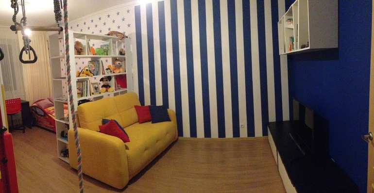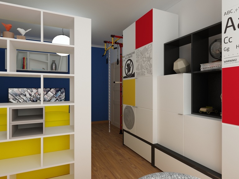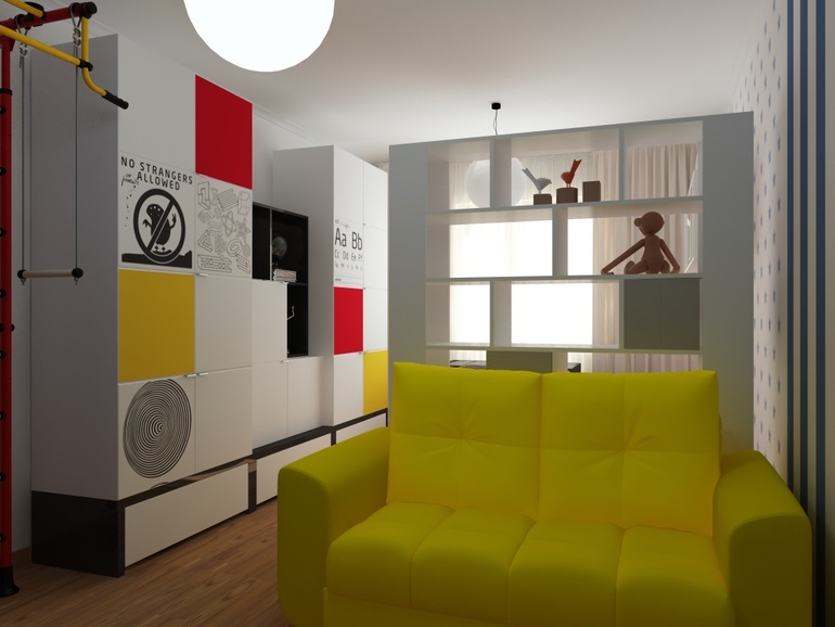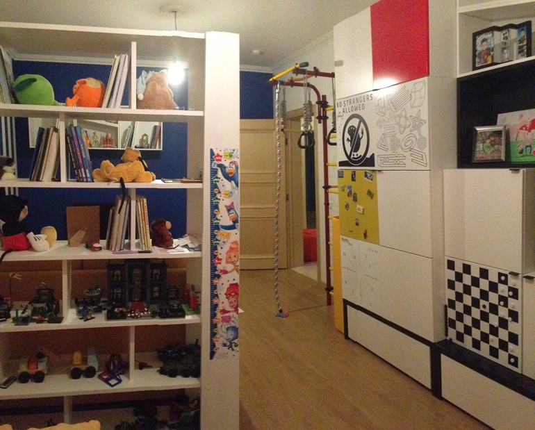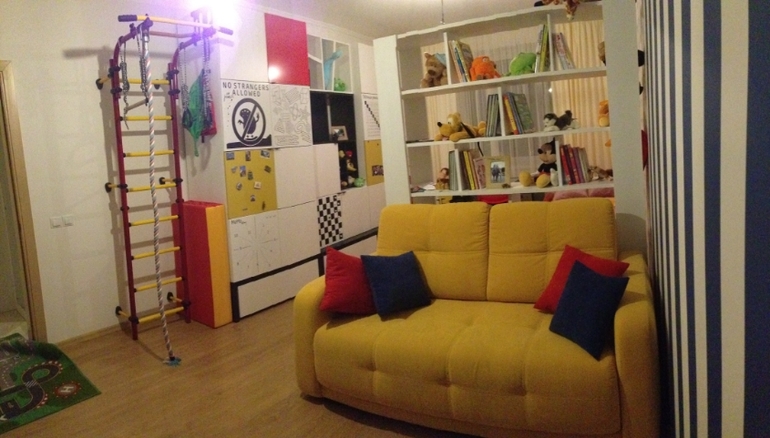 Всё же ни какая визуализация не сможет передать уютный,домашний и обжитый интерьер)) В детской не хватает еще люстр и ковра, но тем не менее это уже замечательная и яркая детская)