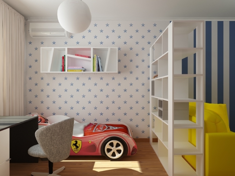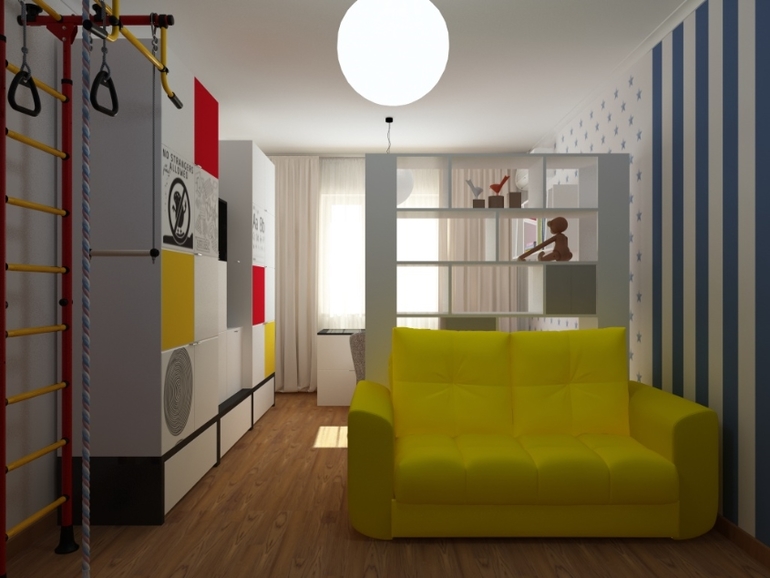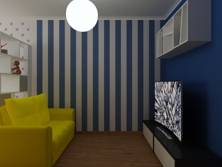 Сначала покажу визуализацию детской. Мною были подобраны обои, мебель и освещение. Оставалась только прежняя кровать ребенка.