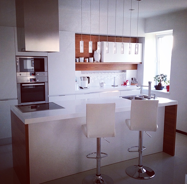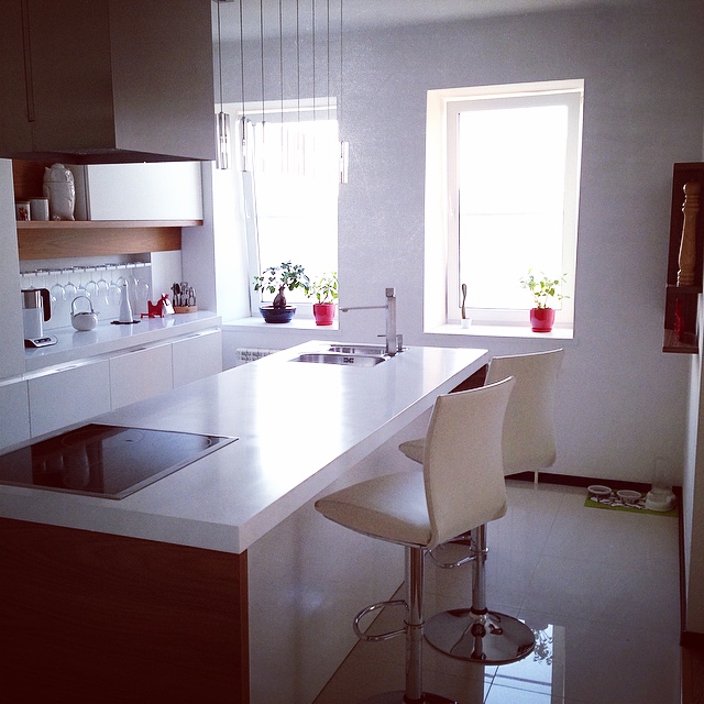 Очень красиво получилось! А какой у кухни метраж? Я все об острове мечтаю, но у меня кухня + гостиная 23 кв.м. Боюсь, не вместится. :( И ещё вопрос: в шкафах, где встроена духовка и микроволновка, находится холодильник? Как вообще Вам соседство холодильника и духовки? Я все думаю, горячая температура от духовки не повлияет на температуру в холодильнике?