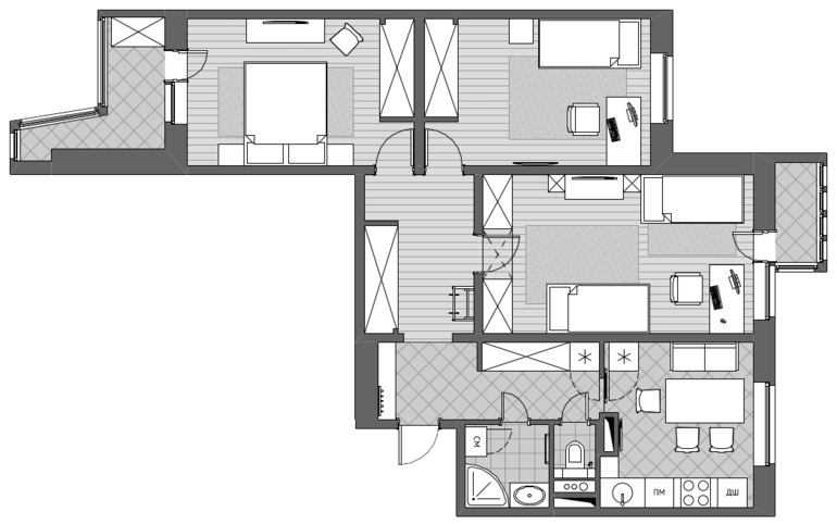 Трёшка, в которой нет гостиной, но есть 2 детские!