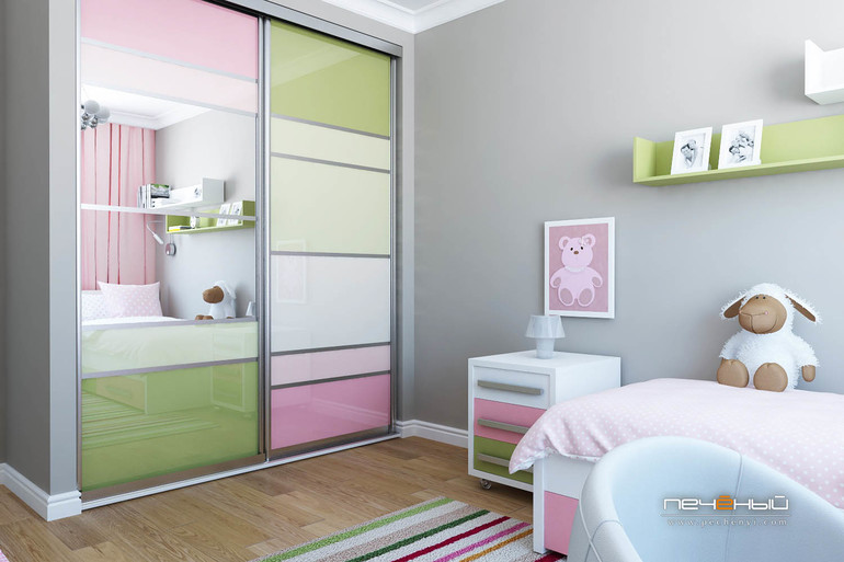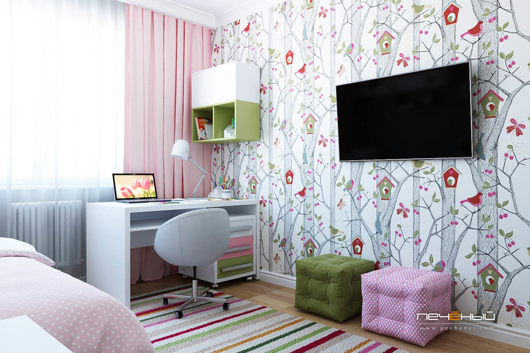 Детская девочки в современном стиле. Сочетание розового с зеленым у меня всегда создают впечатление весны.