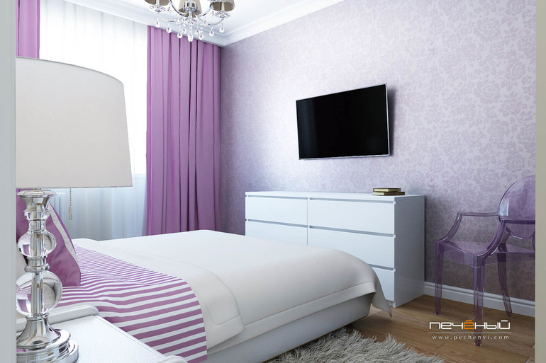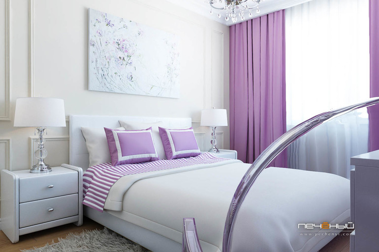 Спальня родителей полярно отличается от кухни. Здесь у нас стиль фьюжн. Фьюжн переводится как "смесь". И вот смешали мы современный стиль и классический.
