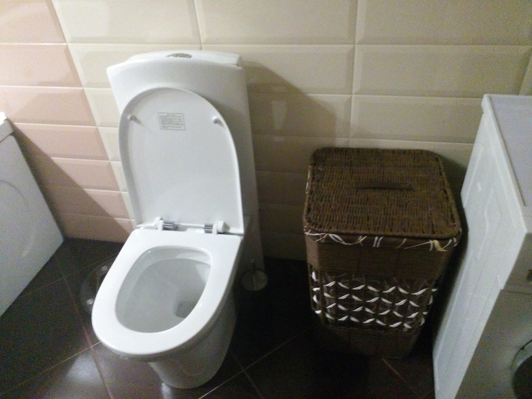 Стеллаж там не встанет, т.к над машинкой полотенцесушитель, да и пакет стирального порошка трудно назвать бардаком). Штора не планируется.Спасибо за ваше мнение!