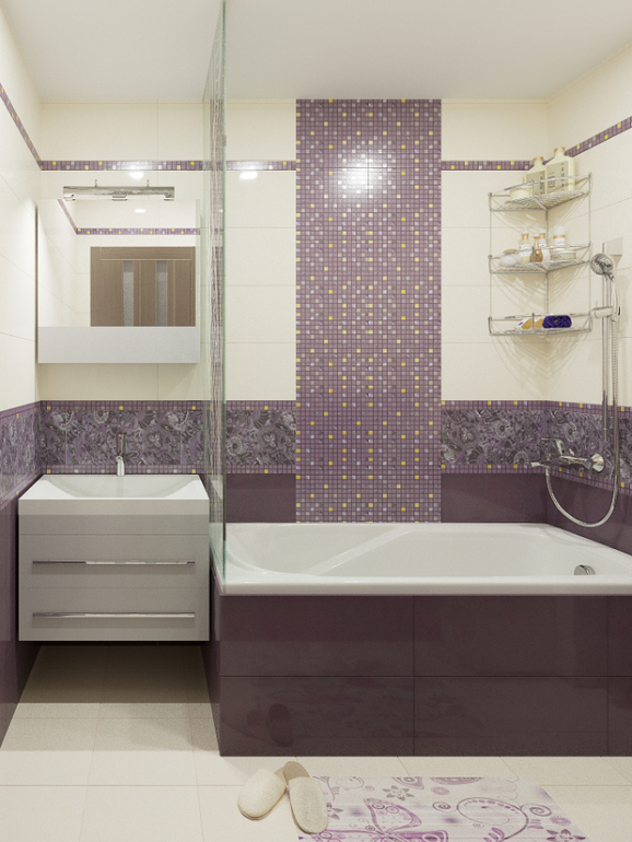 Интерьер ванной с начало хотели выполнить в фиолетово-сиреневой гамме: